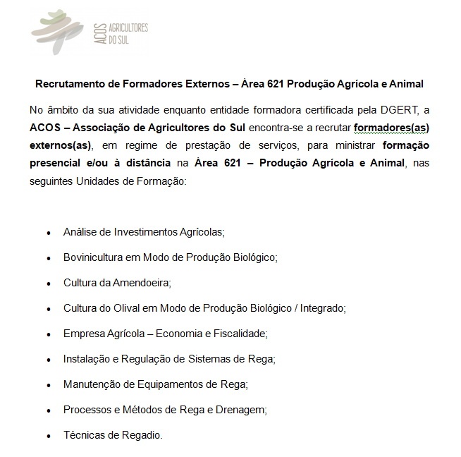 A ACOS está a recrutar formadores externos em regime de prestação de serviços