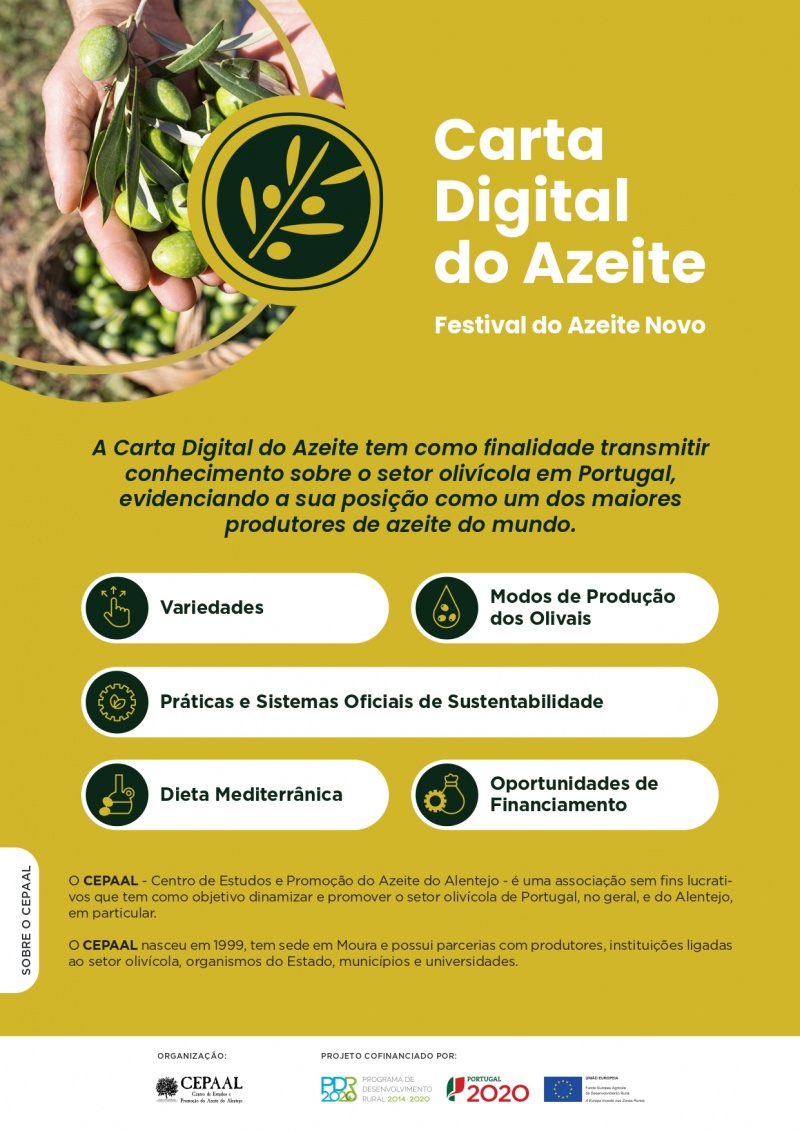 No âmbito do Festival do Azeite Novo, que decorreu nos dias 9 e 10 de dezembro de 2023 em Évora, foi desenvolvida a Carta Digital do Azeite. Esta, tem como principal objetivo transmitir conhecimento sobre o setor olivícola em Portugal, evidenciando a posição do país como um dos maiores produtores de azeite do mundo.