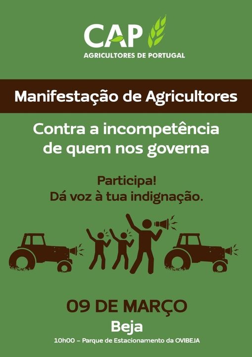 MANIFESTAÇÃO DE AGRICULTORES EM BEJA: 9 de MARÇO | 10H00 | PARQUE DA OVIBEJA